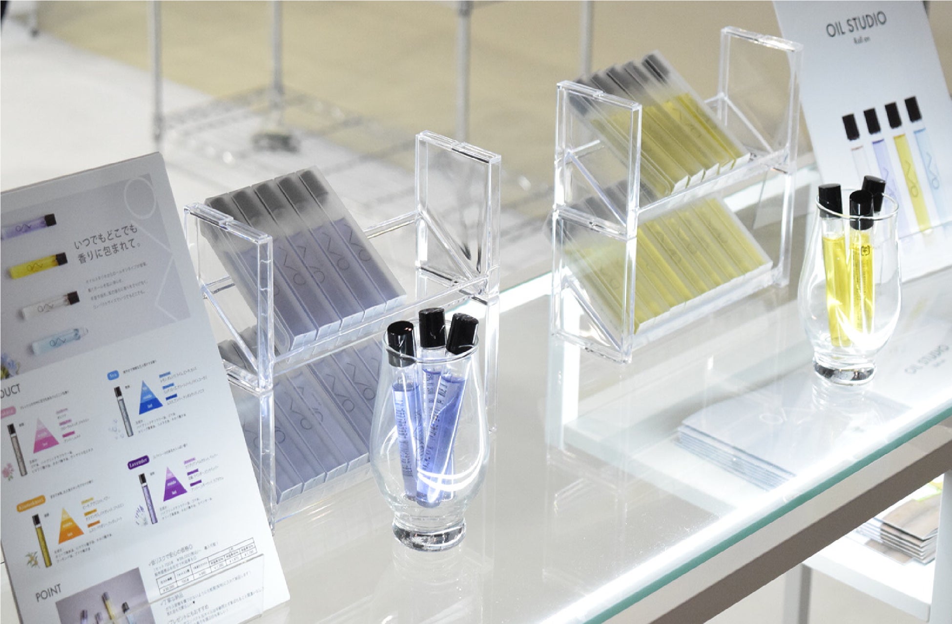 今回、サロンクオリティのヘアオイルを小ロット・多品種・短納期でオーダーメイドできるODMサービス【OIL STUDIO】からは、コンパクトで持ち運びやすく香りを楽しめるロールオンタイプのオイルの展示と販売を行い、多くの来場者様にブースへお越しいただきました。