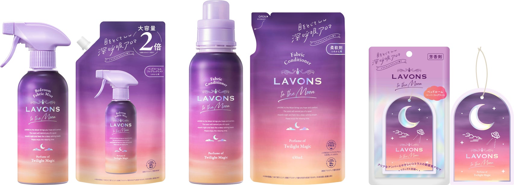 Well Being(ウェルビーイング)ニーズの高まりを背景に、香りによる深いリラックス体験を提供するべく、2022年10月に「ラボン」から発売された新しいシリーズの『ラボン トゥザムーン』。第1弾の「トワイライトマジックの香り」は、思わず深呼吸をしたくなるようなクリアなアンバーとやさしいシトラスを感じる香りで、発売10か月で累計150万個*累計出荷個数を突破し、人気を集めています。また2023年10月からは第2弾の「ノクターナルブルーの香り」が発売を開始し、やさしいサンダルウッドと神秘的なアルモワーズがナチュラルに香るシリーズです。