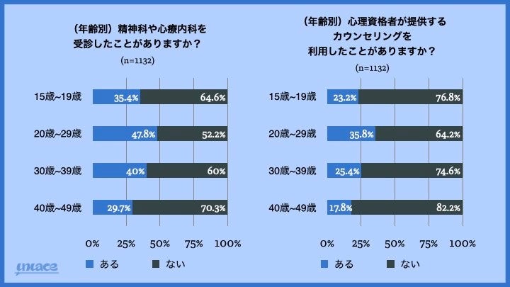 全体の約4割、中でも20代の約半数が精神科や心療内科の利用経験あり