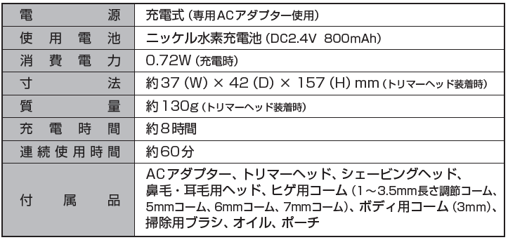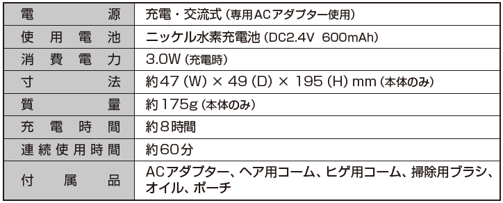 ・2種のコーム付き。(ヘア用コーム、ヒゲ用コーム)
