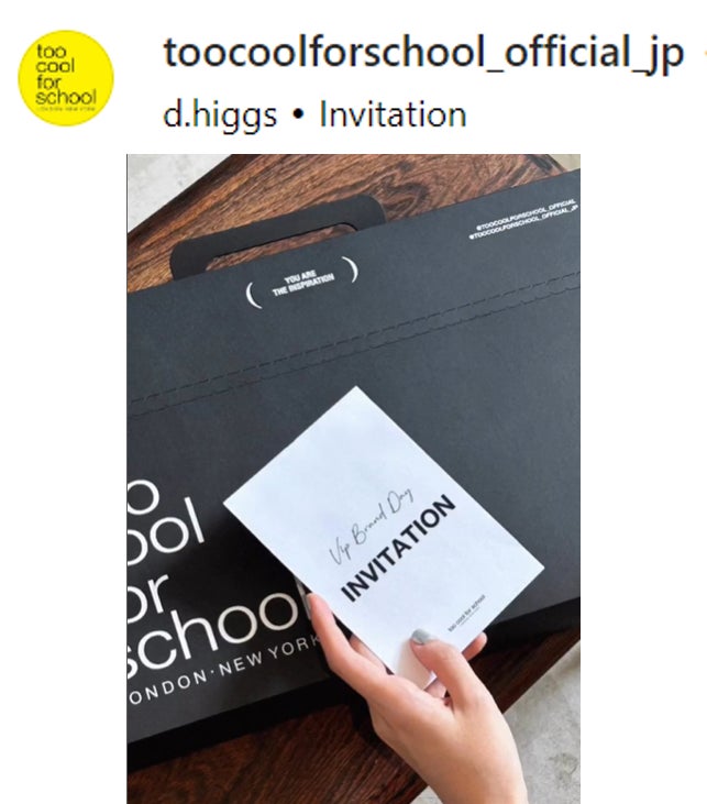 今回は日本のメディア・インフルエンサー、関係者の方だけでなく、日頃よりtoo cool for schoolをご愛好いただいている5名様をイベントにご招待。too cool for schoolのブランドをイメージしたクールな会場で、ブランドの世界観を体験できる、 日本初のイベントです。皆さまのご応募を心よりお待ちしております。
