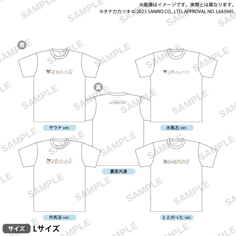 ▼タナカカツキ×サンリオキャラクターズ カワイイサウナパーティー Tシャツ 各3,850円(税込)
