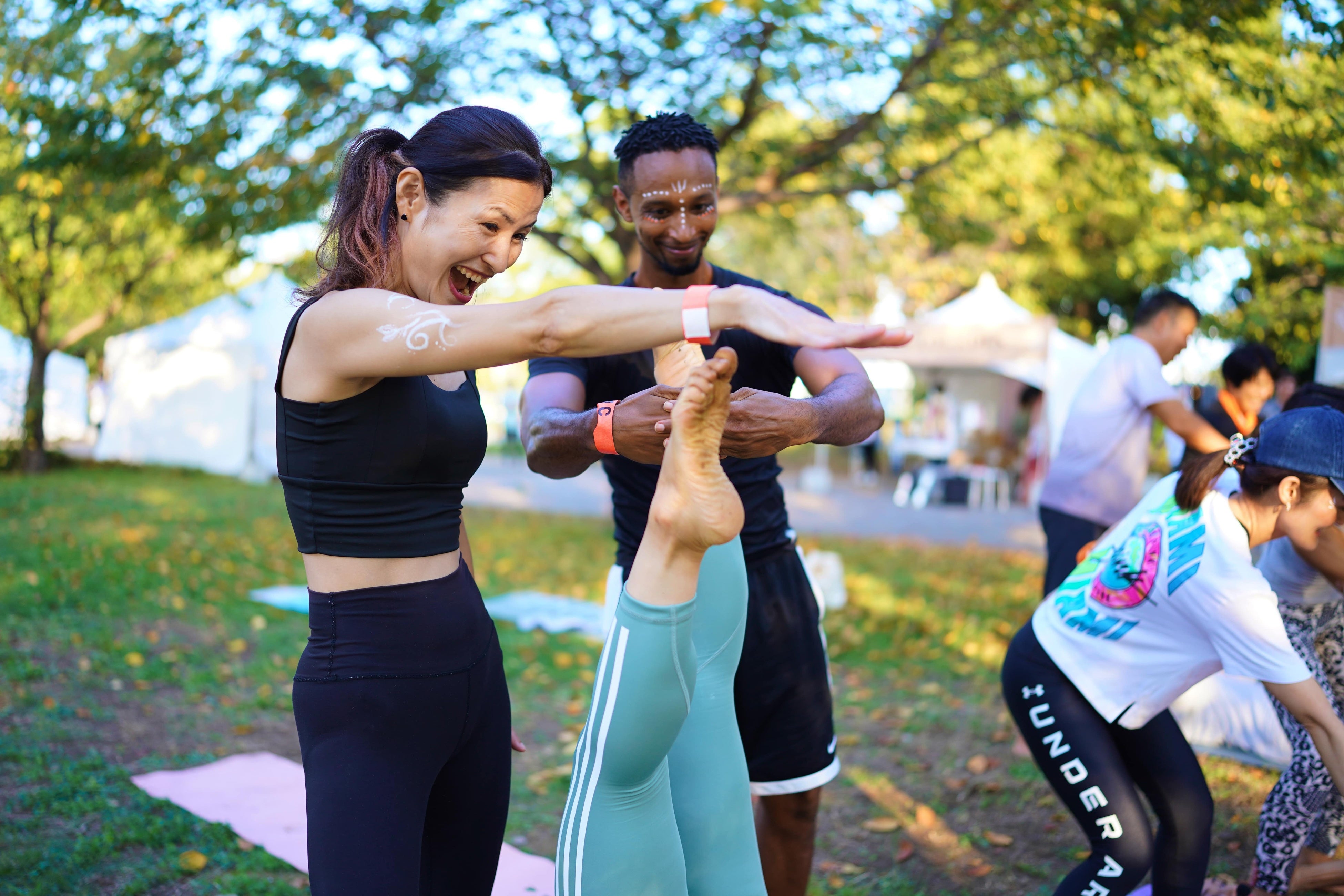 また、会場には無料で体験できるフェイスペイントやヘルシーで美味しく食べられるフードトラックなどがあり、参加者を楽しませました。更に3ステージの後にはワークショップがあり、各々好きなプログラムに参加し体を動かし楽しんでいただきました。