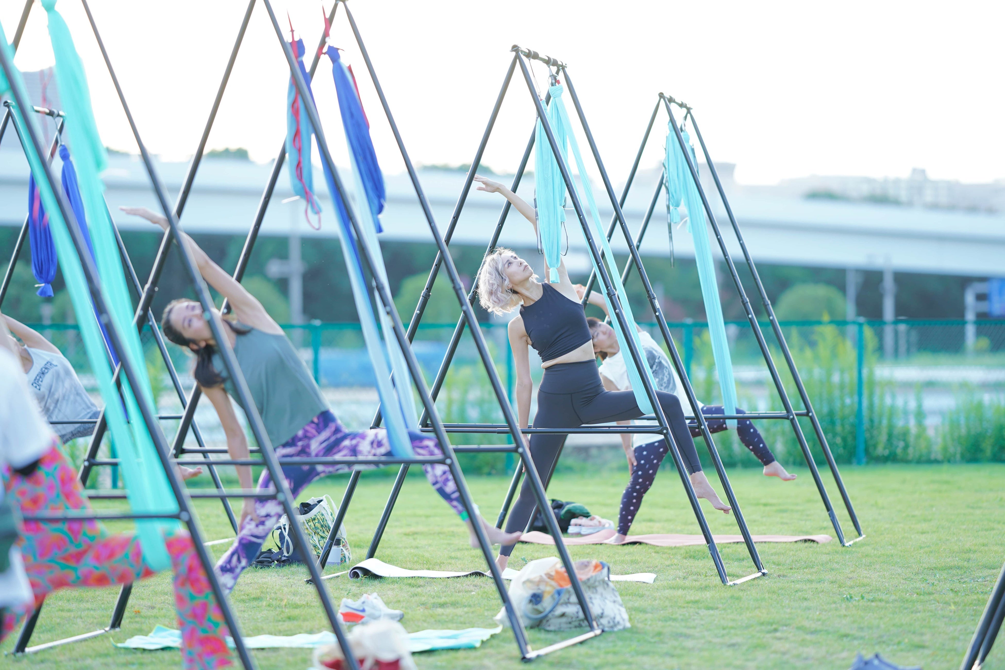 田辺莉咲子による自身がプロデュースするストレッチバンドを用いたトレーニング、モデルとしての活動も行う渡辺由布子によるエアリアルヨガ、今大人気のピラティスやアクロヨガ、愛犬と一緒に楽しめるドッグヨガやフラフープエクササイズに至るまで、多種多様なWORKSHOPが開催され参加者は思い思いの時間を過ごしました。