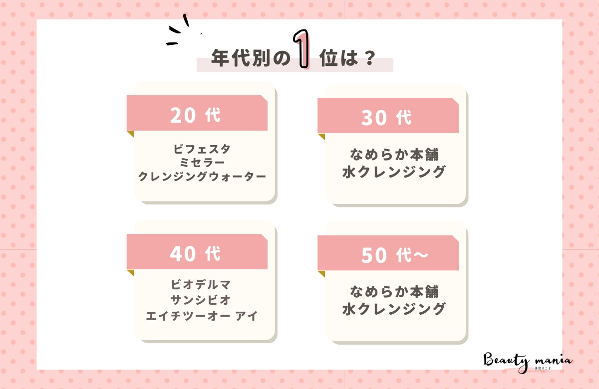 20代の1位『ビフェスタ:ミセラークレンジングウォーター』(31.4%)