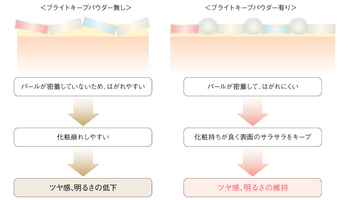 3.<ブライトキープパウダー>が粉体を密着させ、肌の明るさが続く
