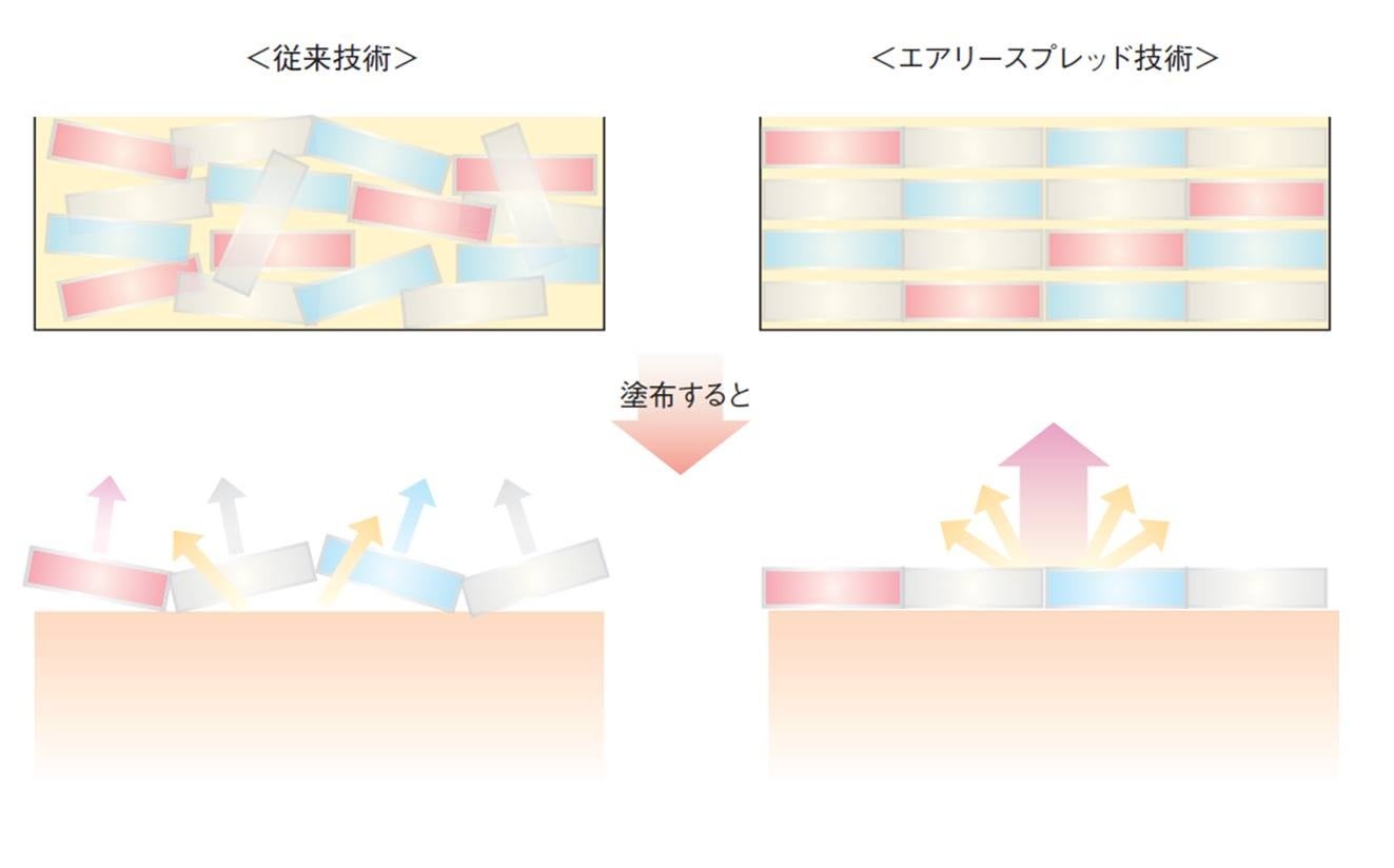3色のクリアな発色の微細パールを高配合し、その効果を最大限発揮する独自の<エアリースプレッド製法>で、