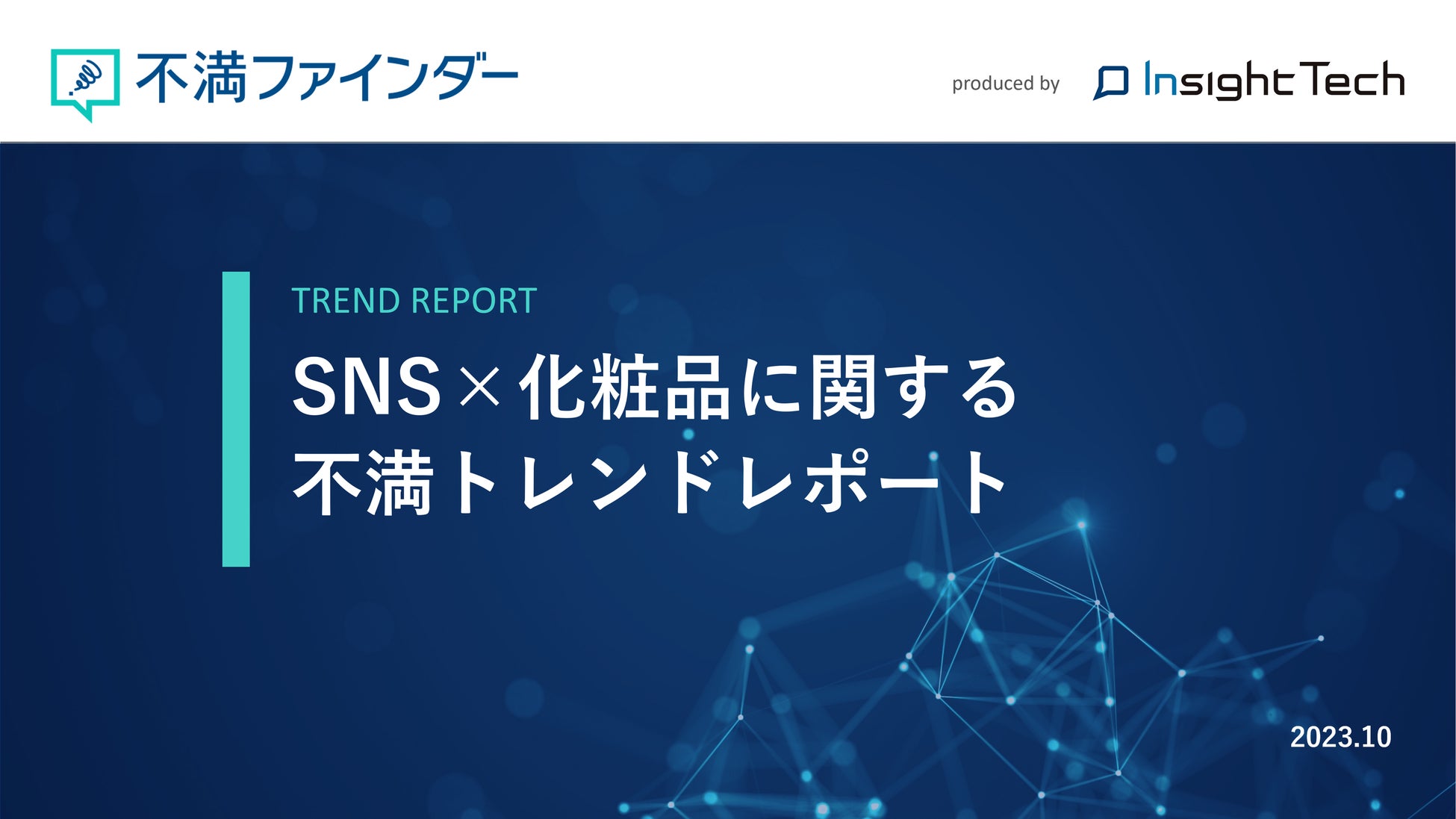 株式会社 Insight Tech(東京都新宿区、代表:伊藤友博、以下 Insight Tech)は、同社が運営する『不満買取センター』に寄せられた、SNSで化粧品の情報収集をする際の不満を『不満ファインダー』を用いて解析・考察したレポートを公開しました。