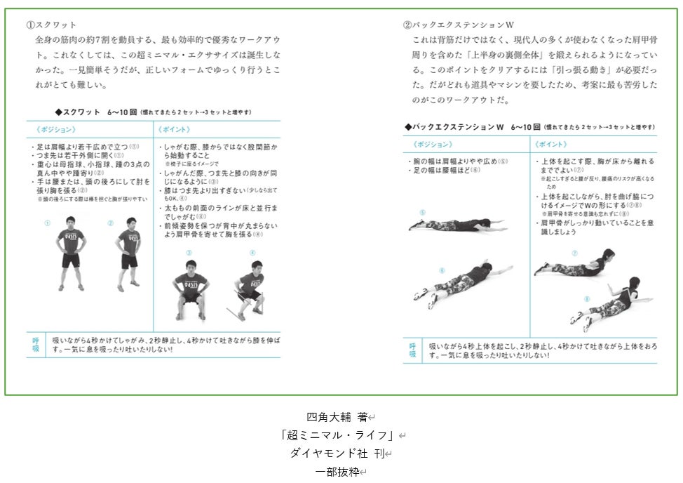 「超ミニマル・ライフ」はベストセラーとなった前作「超ミニマル・主義」の続編です。前作は新時代における「仕事術」にフォーカスされていますが、新作では、著者が人生をかけて追求してきた場所・時間・労働・人間関係・お金に縛られず幸せに生きる「ライフスキル」の全技法を公開しています。著者は肉体を「オーガニックデバイス」と呼び、人生の最重要インフラと考えています。「健康な心と体」を整えるために見つけた最適解がオアシスの監修した「超ミニマル・エクササイズ」として紹介されています。