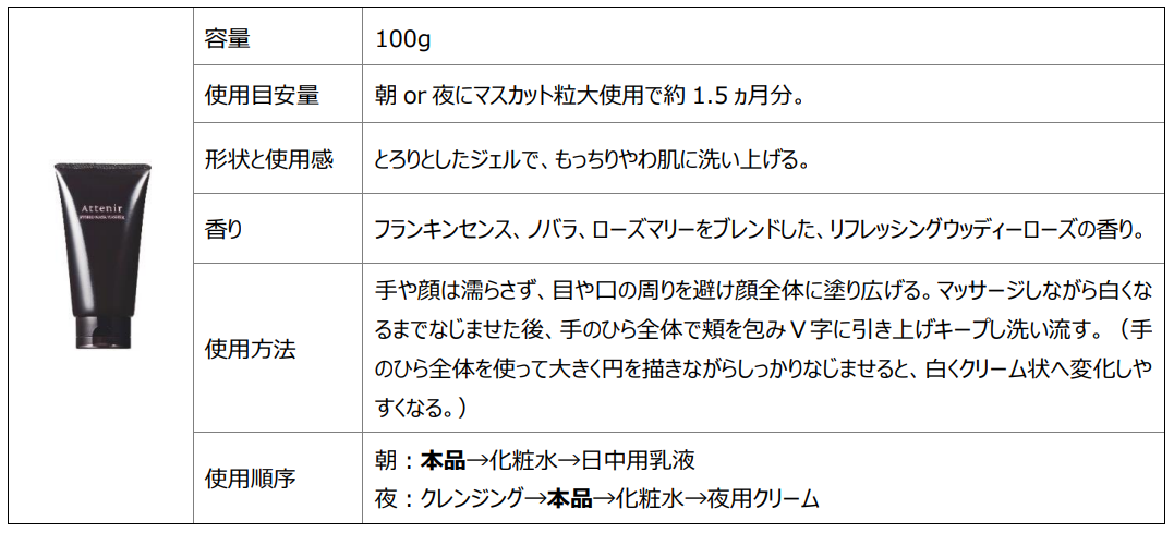 とろりとしたジェルがキメの細部まで入り込み、白いクリーム状に変化するスペシャル洗顔料。洗顔・マッサージ・マスクの3役で、肌表面のゴワつきが気になりがちな大人の肌を、“もっちりやわ肌”に洗い上げる。
