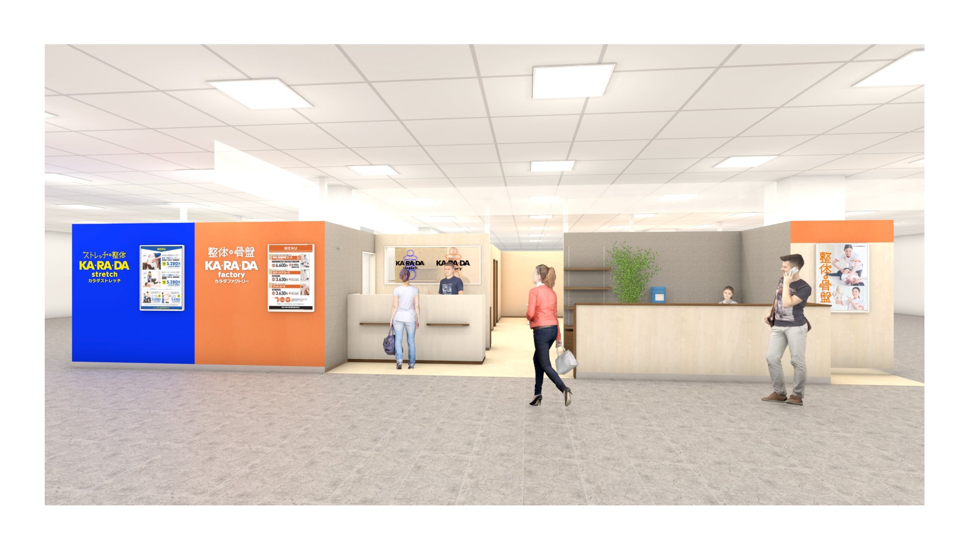 カラダストレッチのフランチャイズ第一号店となる、FKD宇都宮店は、カラダファクトリーとカラダストレッチの併設店舗業態として出店いたします。