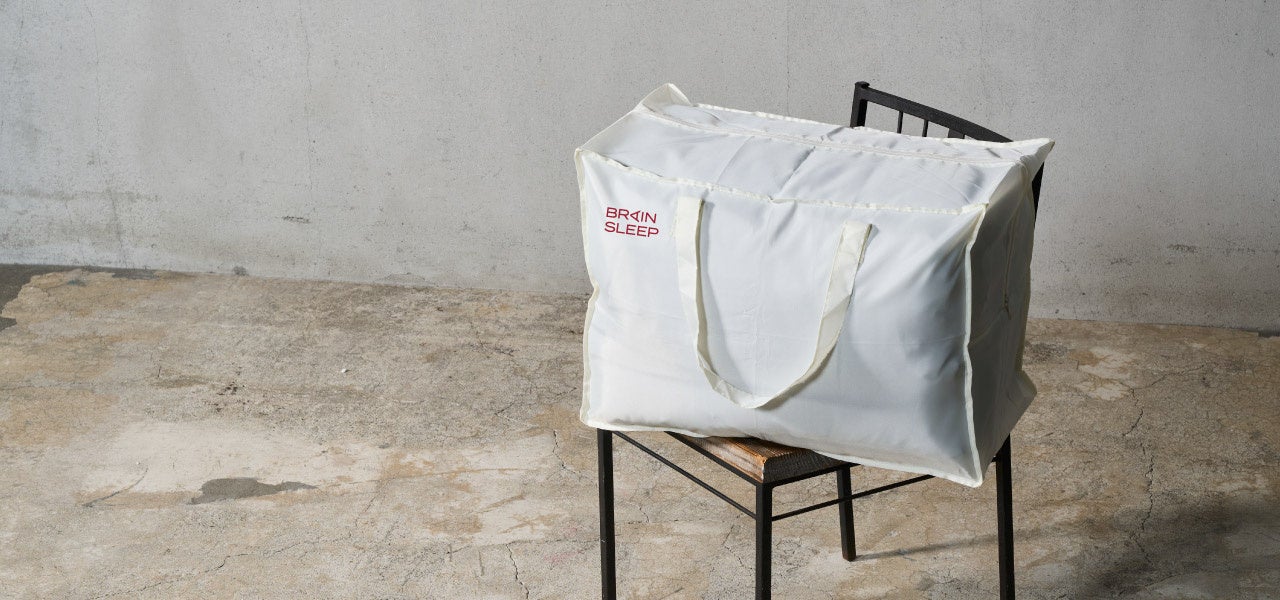 収納も寝具の大切な要素です。付属の専用バッグに入れてコンパクトに収納できます。
