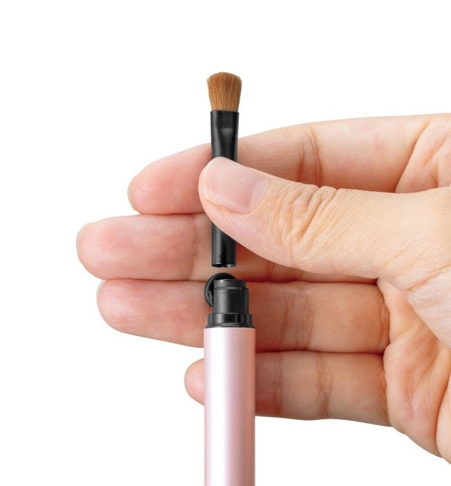 2023年6月に発売した板垣李光人さんプロデュースの「AUGER マルチユーズブラシ」の機構を活かした商品で、ブラシヘッドを本体に収納することができるので、ブラシでポーチの中を汚したり、毛先を痛めたりすることなく持ち運ぶことができます。