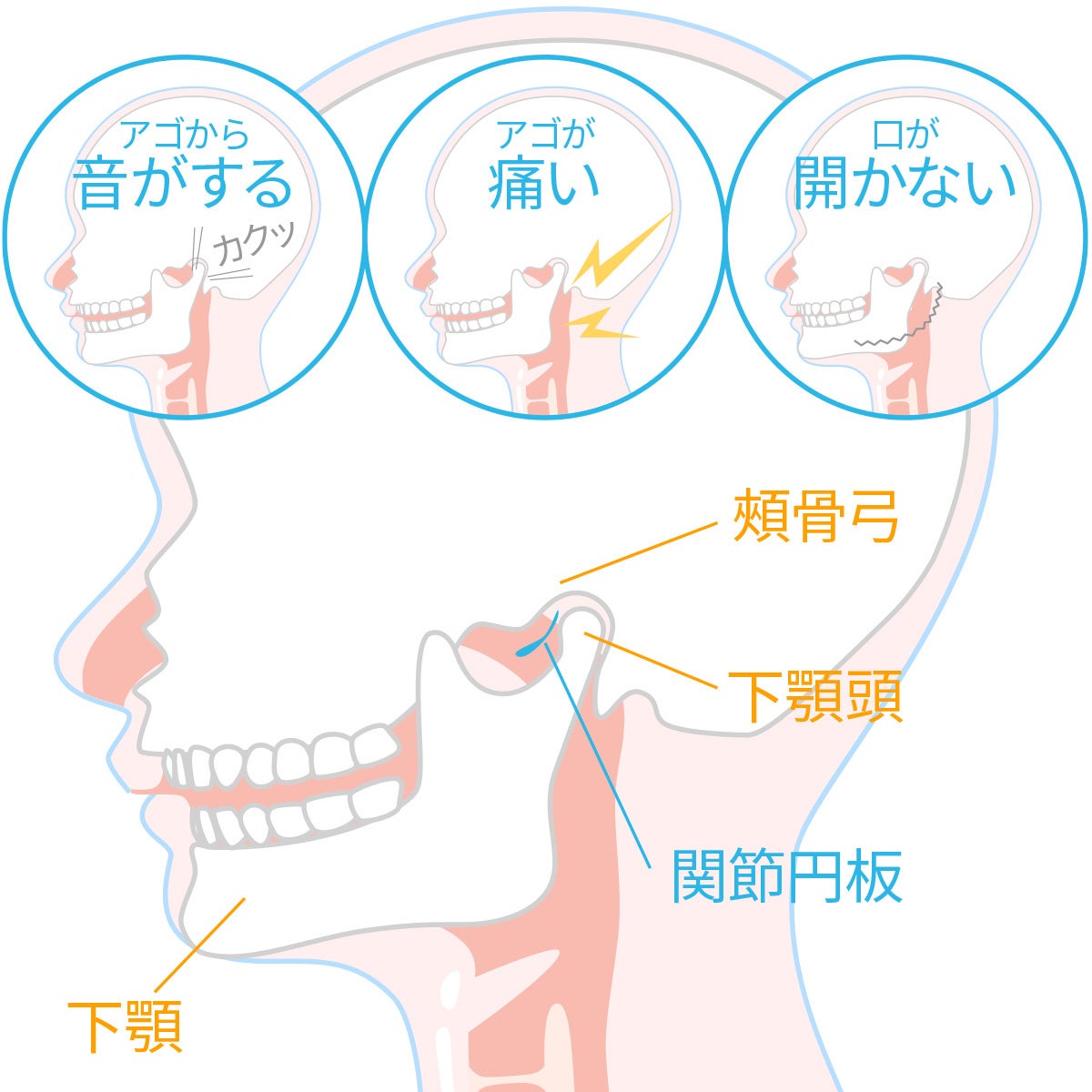 顎関節症は、筋肉の過緊張・ディスクの位置異常・過度な口の開け閉じや誤った咬合・神経の影響など様々な原因が引き起こすものです。