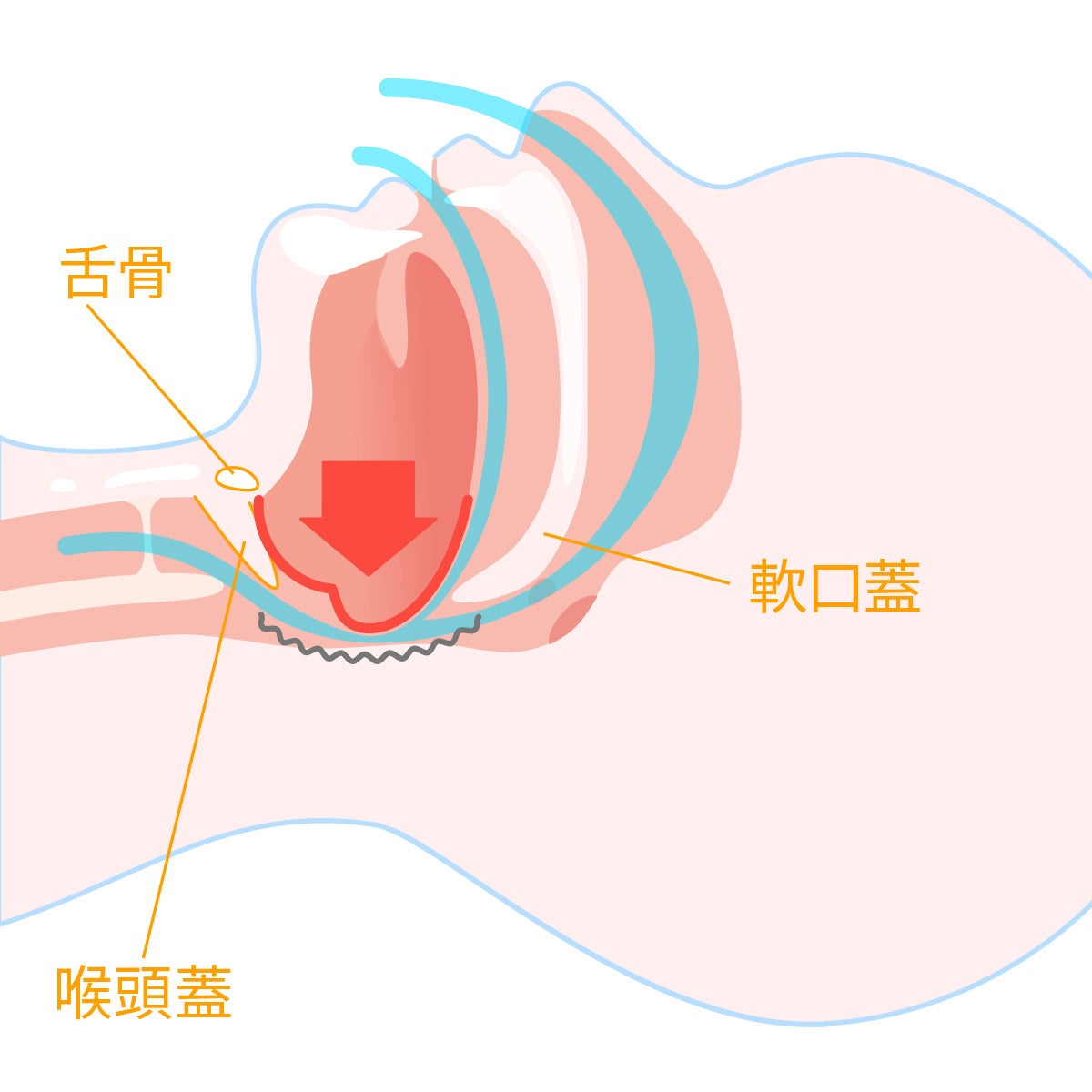 「睡眠時の舌の沈下(寝ている時にベロが喉の方に落ちる)・軟口蓋の沈下」を抑制します。