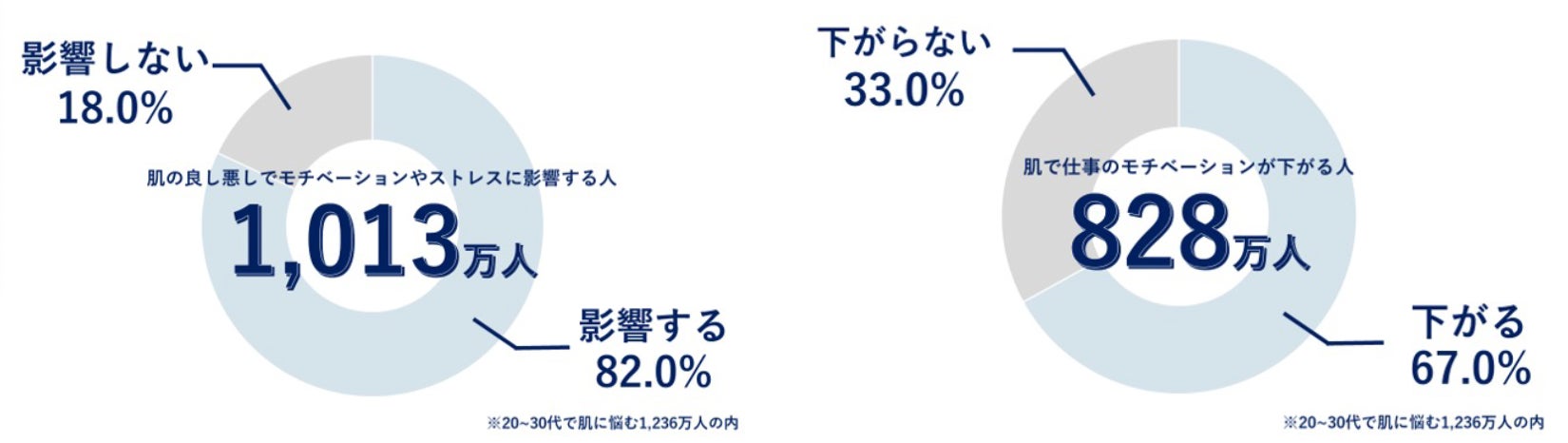 ー肌の良し悪しでモチベーションやストレスに影響する人、1,013万人(82.0%)