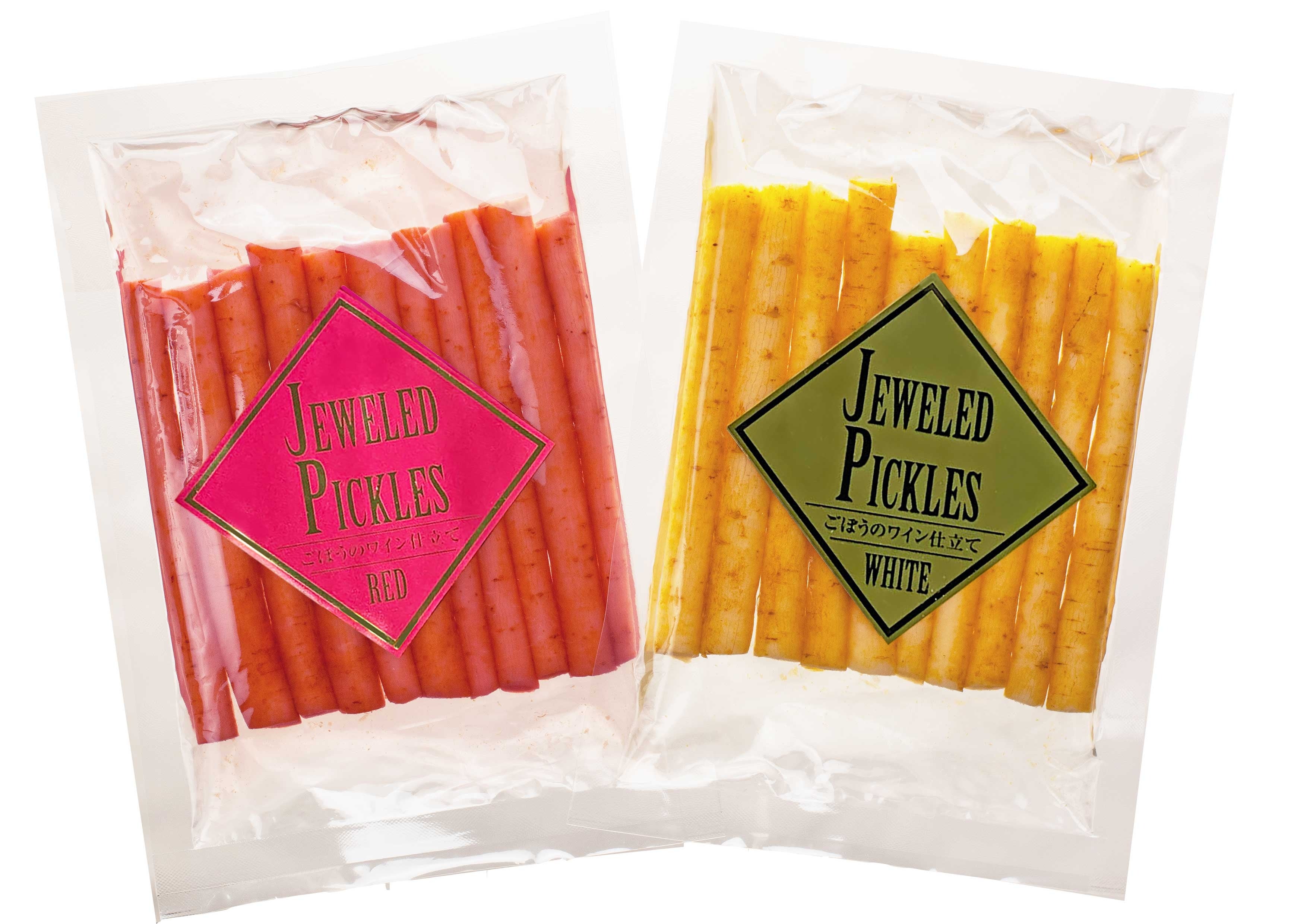ヘルシーかつ美容や健康にも効果的なワイン仕立てのごぼうのピクルスです。「赤ワイン仕立て」と「白ワイン仕立て」、2つの特別なバリエーションをお楽しみいただけます。