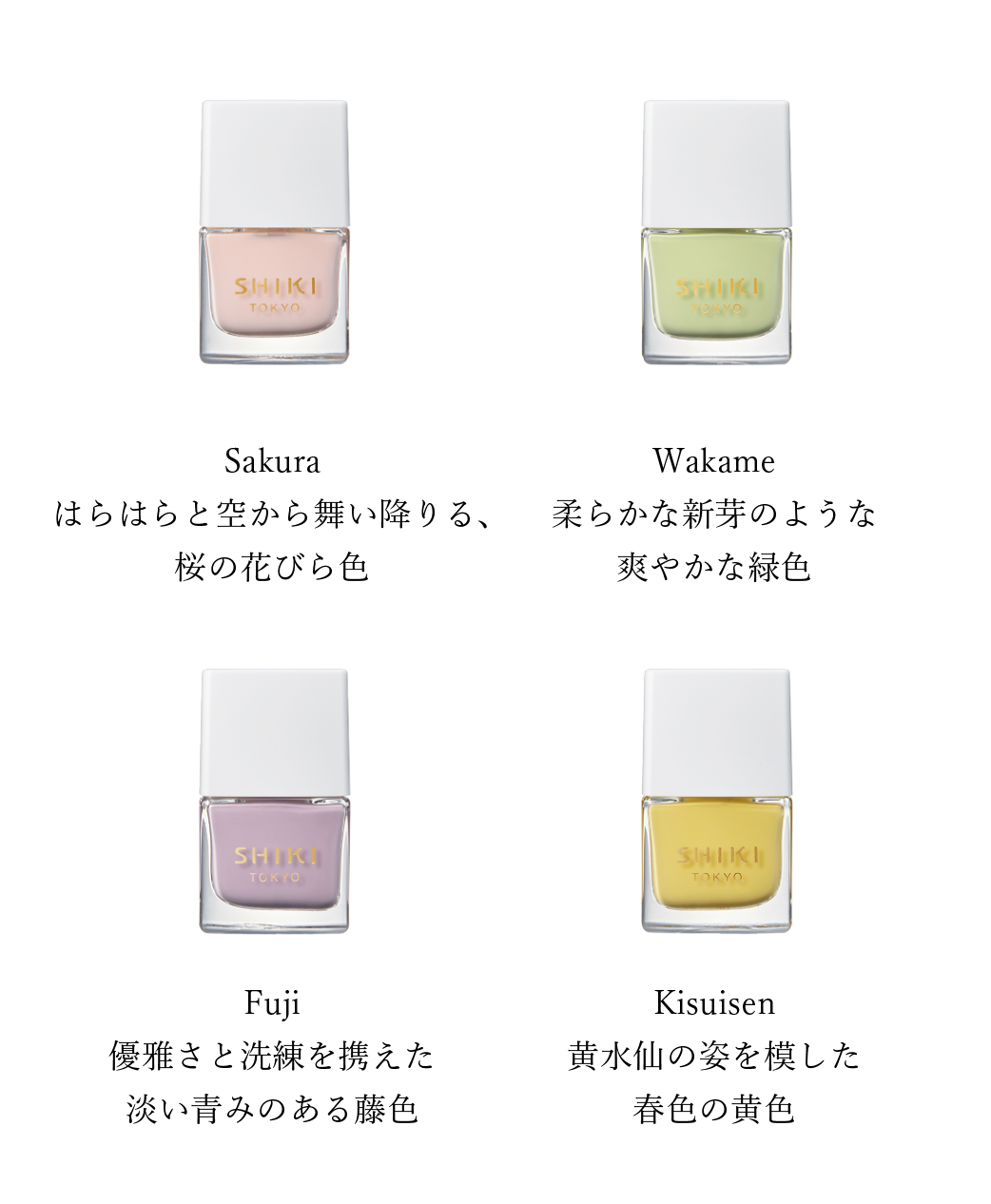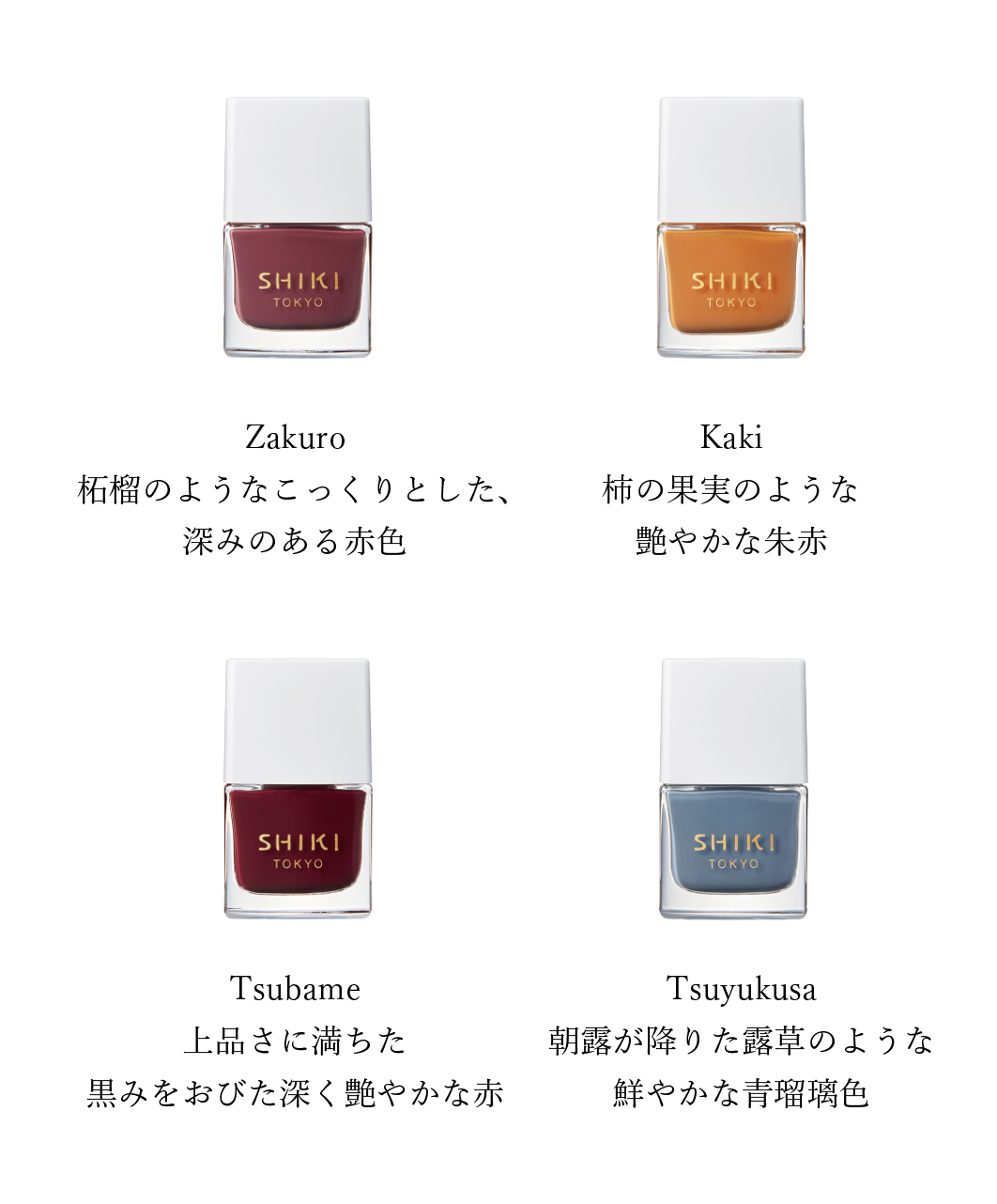 日本の四季の色彩を表現した、15色のカラーマニキュア【8mL/¥3,278( 税込)】※マニキュア全て