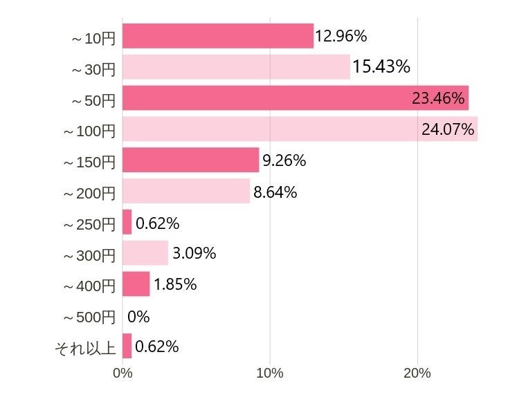 一方使わない日があるかたの、その理由としては、“コストがかかる”がトップに挙がっています。そんな40代女性の普段使いの入浴剤の価格帯は~50円、~100円がそれぞれ2割以上とう結果に。スーパーや薬局で市販されているような、お手頃価格のものを使用することが多いようです。