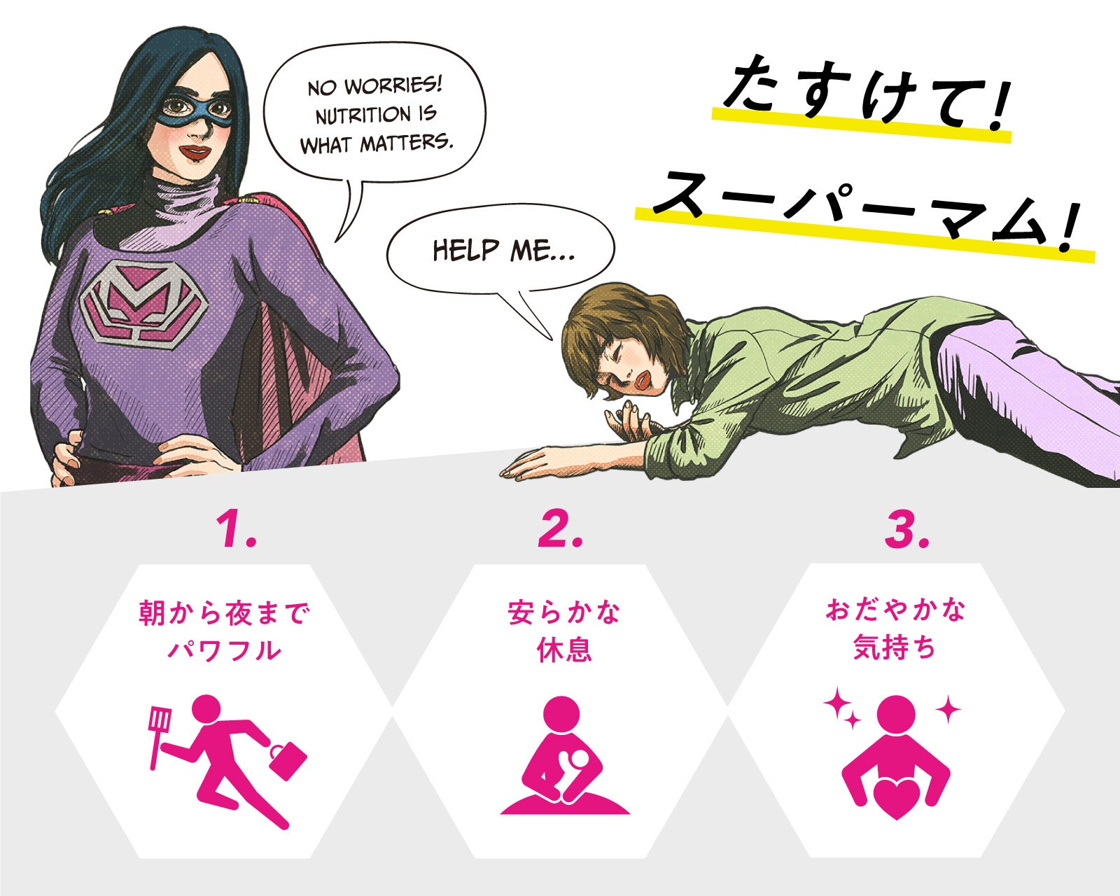 そのためには一切妥協しない開発姿勢を貫き、「ママ専用」のパワフルな栄養を提供するスーパーマムが誕生しました。