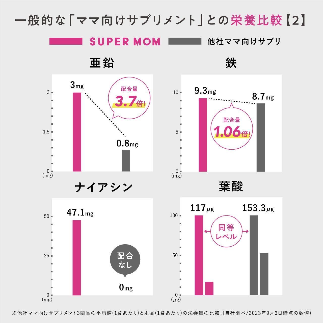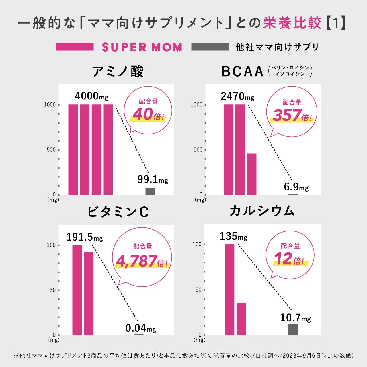 スーパーマムの栄養価は、一般的なママ向けサプリメントの『357倍』。(※)