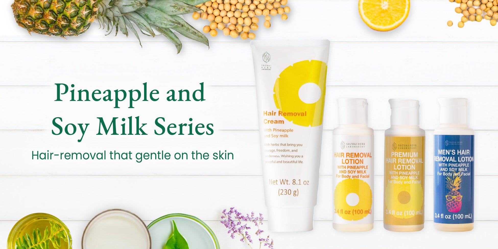 Amazon USAで販売中の『パイナップル豆乳シリーズ』は、小さなお子様も安心して使っていただいているロングセラー商品です。体毛の色素や肌の色を問わずご利用いただけます。