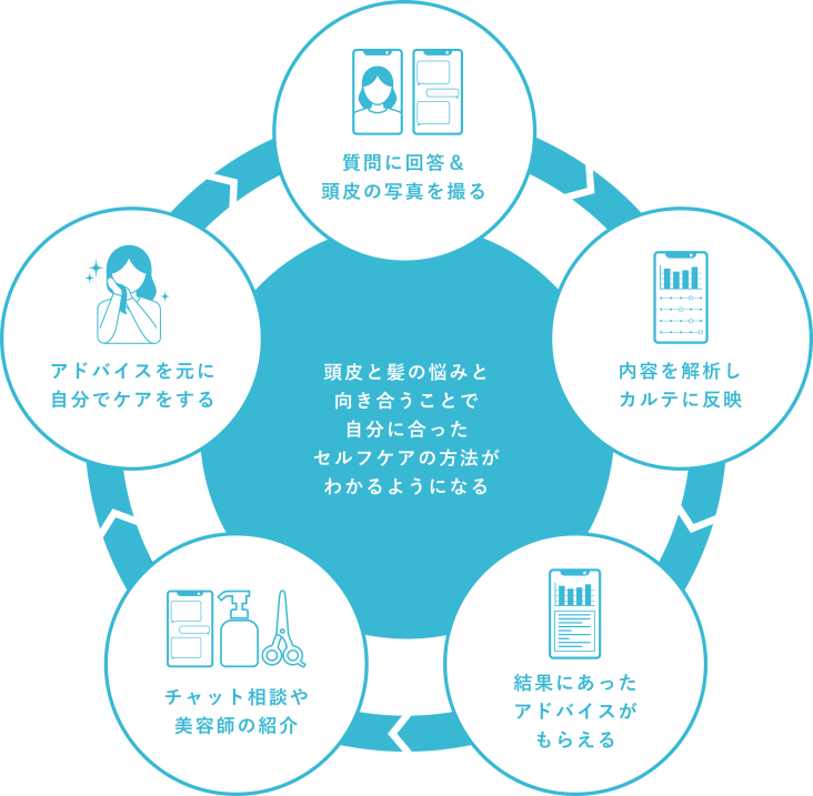 女性特化で頭皮と髪を切り口にしなやかな美しさを手に入れることができるようになるオンラインカウンセリング&画像解析サービス。意外と知らない、相談しにくいヘアケアのお悩みを専門家に無料相談できます。化粧品の提案だけでなく、ライフスタイルの提案を行います。