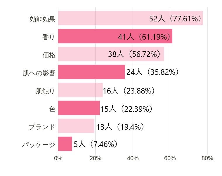 選ぶ際のポイントとしては、効能・効果がトップで次に多かったのが香り。