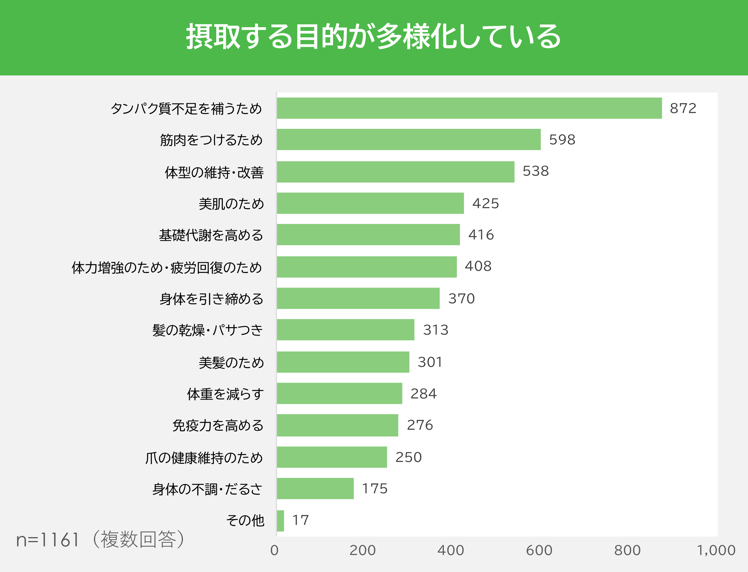 対象 :  日常的にプロテインサプリメントを摂取する25〜54歳の女性1,161名