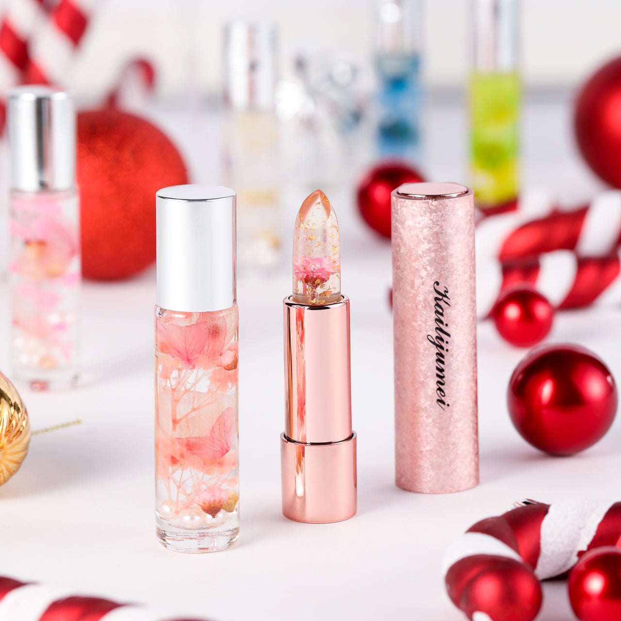 ※リップの中のお花とマルチオイルのお花は本物のドライフラワーのため、個体差がございます。写真と全く同じではないことをご了承ください。