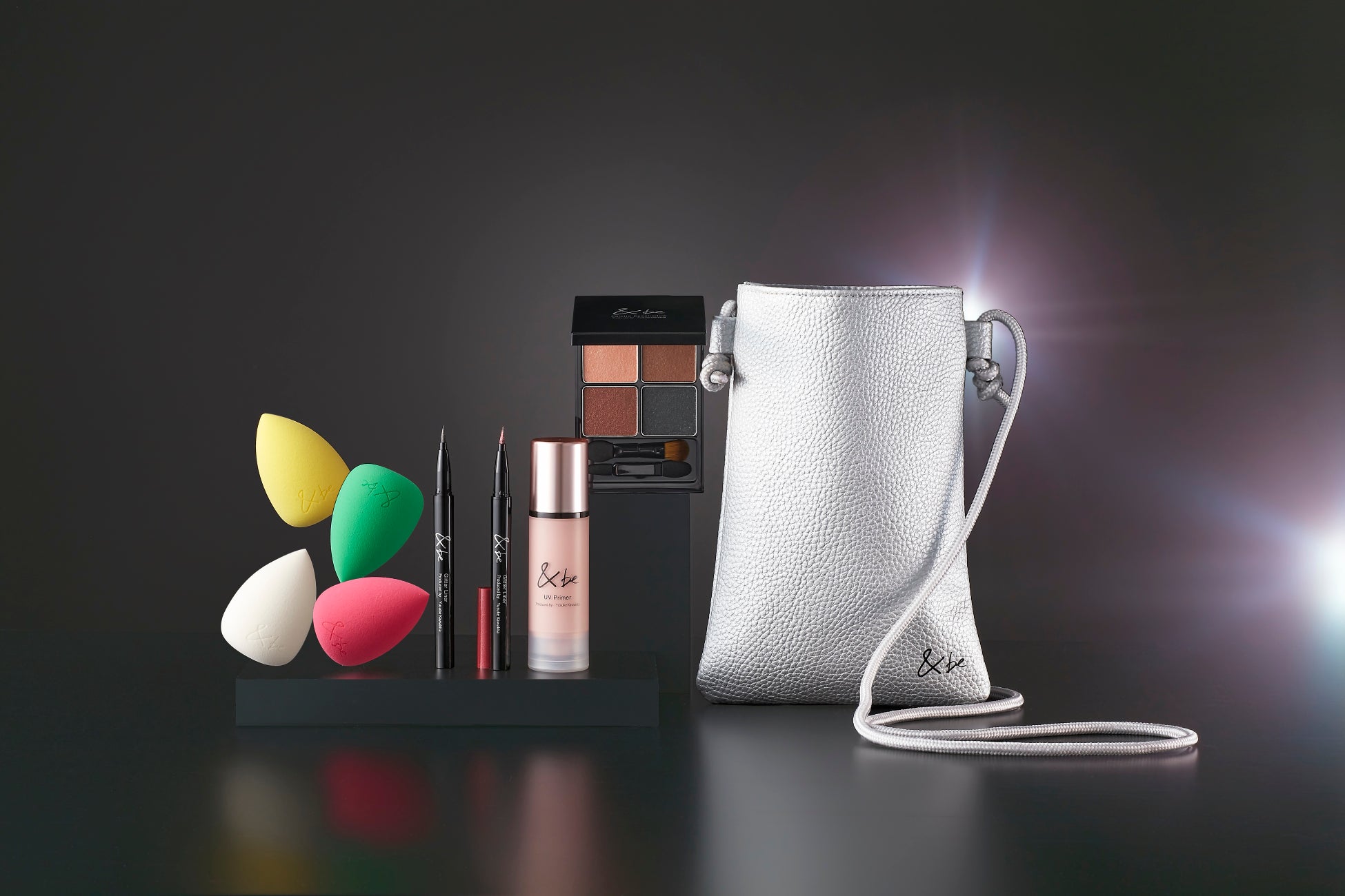 2022年の発売から、累計45 万本を売り上げている大ヒット化粧下地「&be UVプライマー」。今回発売される限定色・ピーチグロウは、色ムラや毛穴などの肌ノイズを補正するピンクパールで冬のツヤ肌を叶えます。「&be パレットアイシャドウ」の限定色・グランジロックは、カッパー系のブラウンに繊細ラメのブラックがアクセントとなり大胆で奥行きのある目元を演出。そして今夏の限定アイテムとして人気を博した「&be グリッターライナー」より、ブラックパールグリッターとルビーグリッターの2色が新たに登場します。クリスマスをイメージしたホリデーカラーをまとった「&be ブラックスポンジ」は、お得な4色の限定セットに。