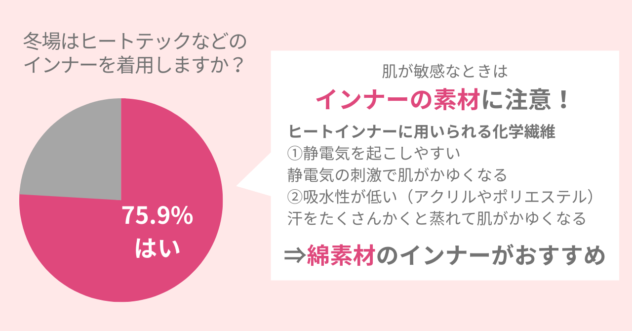 ●75.9%の女性が着用するヒートインナー、肌のかゆみの原因になってるかも