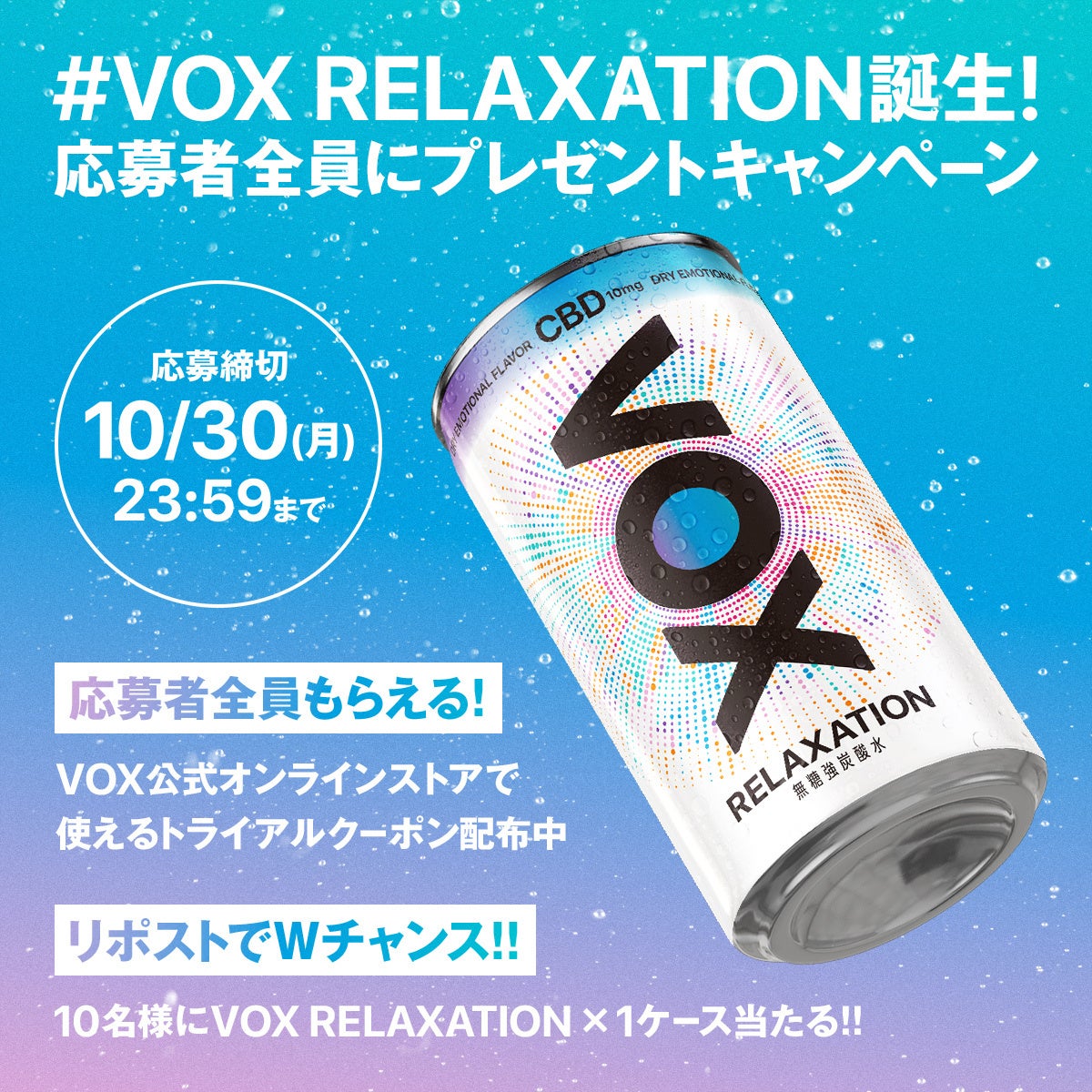 サンプリングイベントに遭遇できなかった方にも、新感覚リラクゼーションを体感するチャンス!VOX公式X では、応募者全員にトライアルクーポンが当たるプレゼントキャンペーンも同時開催中。渋谷で一足先にVOX RELAXATIONを受け取った方は、ぜひトライアルセットの感想を添えてリポストしてみてください。