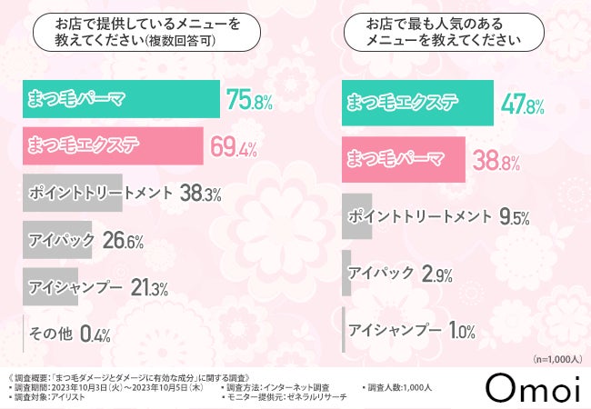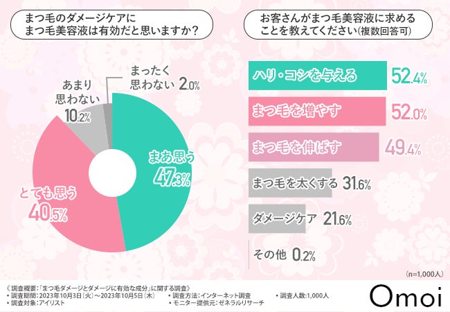 そこで今回、株式会社Omoi(http://omoi.style/index.html)は、まつ毛のプロであるアイリスト1,000名を対象に「まつ毛ダメージとダメージに有効な成分」に関する調査を実施しました。