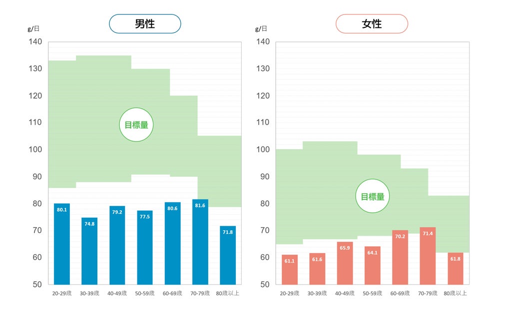 たんぱく質の重要性が認知されても、実際にはまだまだ足りていない摂取量