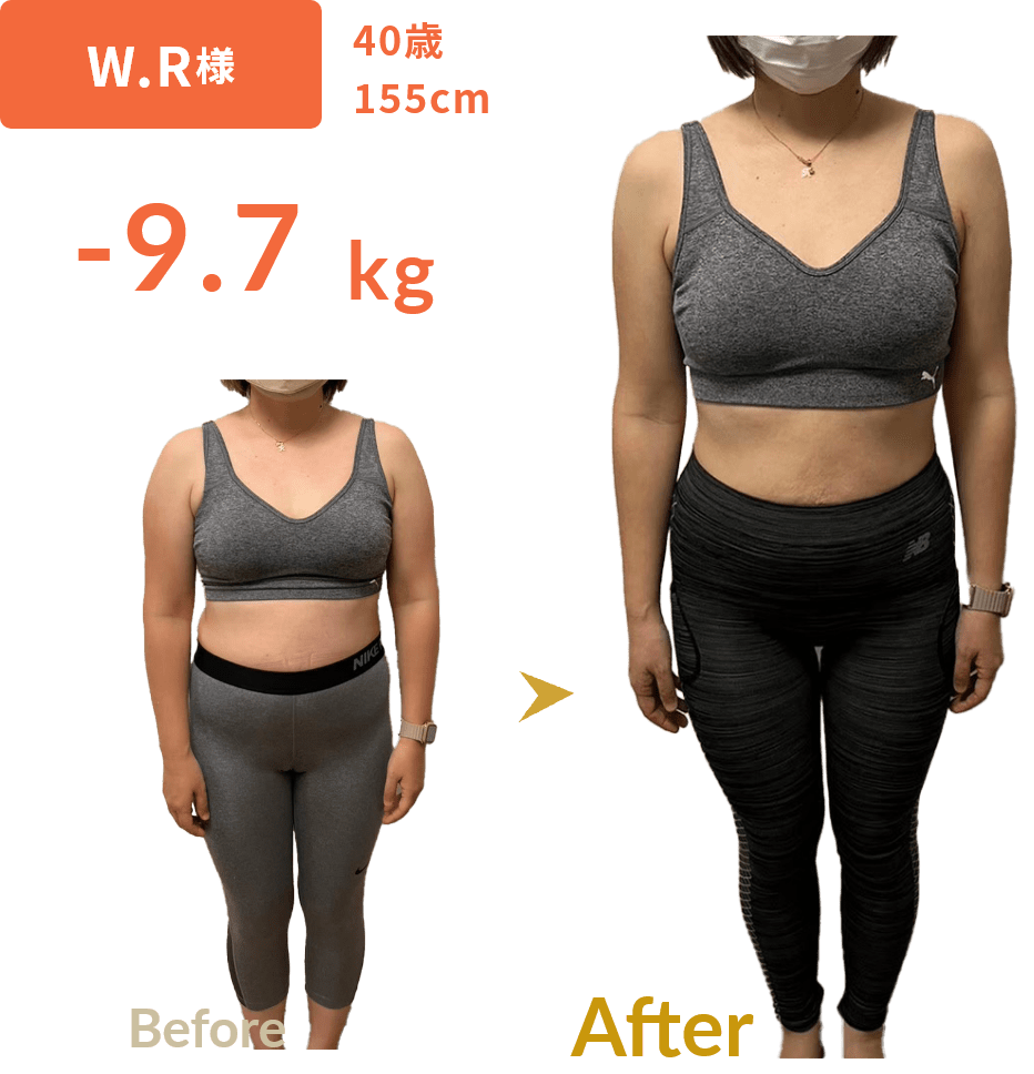産後、体重が大幅に増え体力も無くなっているためトレーニングは『きついかな』と思っていましたが、その日の体調や気分を考慮してメニューを考えてくれるので楽しく継続して痩せることができました! |