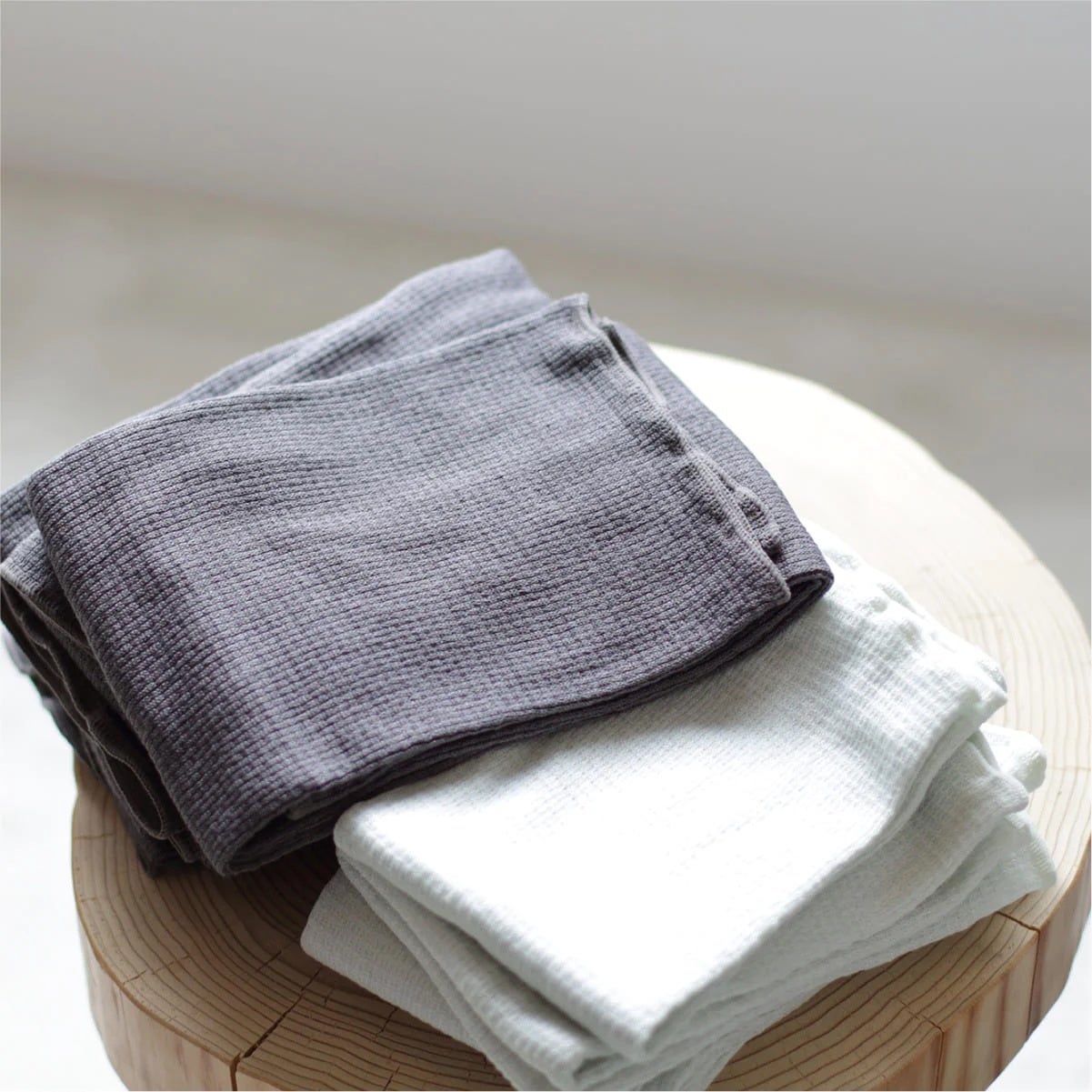 今日もいいことが起こりそうな気がする。着けているあいだにそんな前向きな体と心、時間が整う腹巻き(3e-HARAMAKI)の普通丈をご紹介します。日の光が差し込む部屋でいつもの時間に目覚める。頭はすっきりしていて、身体も心も羽が生えたように軽い。【カラー】アースグレー、フロスティホワイト