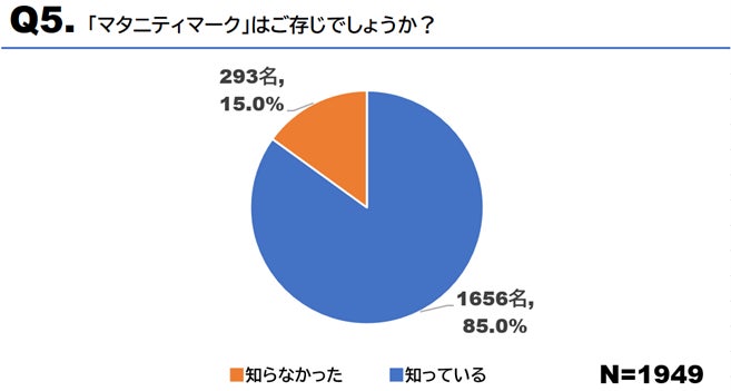 マタニティマークを知っているか尋ねたところ、知っている方が85%と高い認知度を示しました。