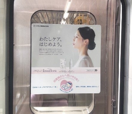 弊社は、マタニティマークの普及と妊産婦の方がより安全にそして快適に過ごせるようサポートしたいという想いから、マタニティマークとタイアップし、電車内の優先席エリアにステッカーを掲示しております。
