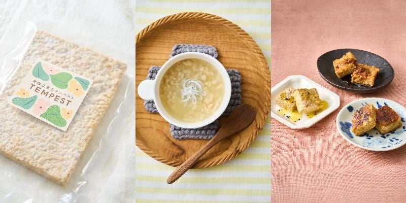 従来のテンペには特有の癖がありますが、テンペストは味や香りに癖がなく、豆のうま味を感じられる食べやすい仕上がりになっているため、味噌汁やパスタの具、離乳食など、様々な料理に使用することができます。