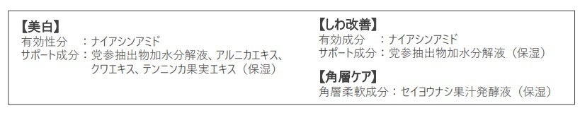 ※1:メラニンの生成を抑え、しみ・そばかすを防ぐ ※2:浸透は角層まで ※3:年齢にあったお手入れ ※4:すべての方に肌トラブルや刺激が起こらないということではありません