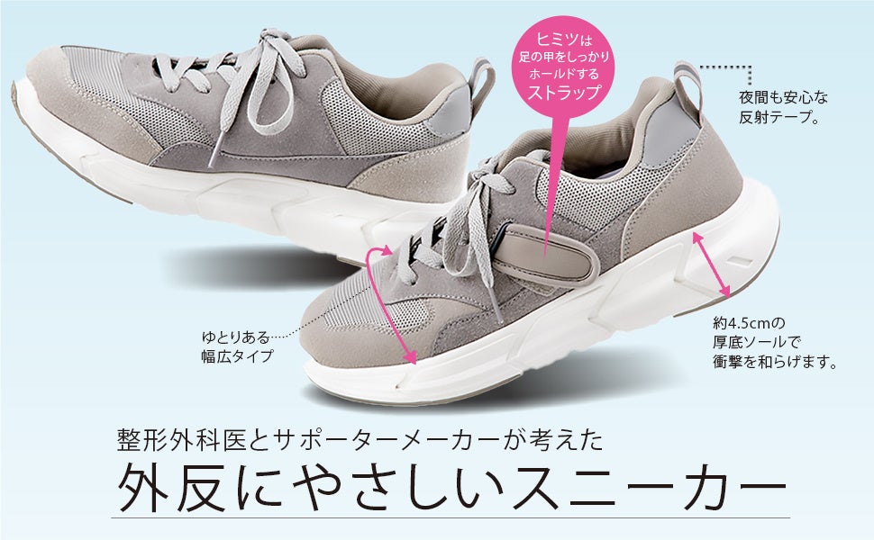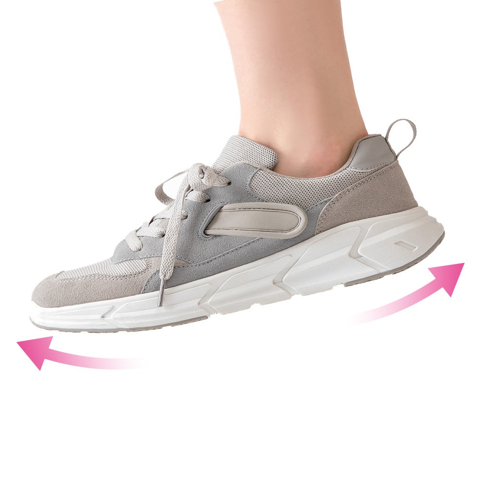 かかとから着地し小指から親指へと歩行時の重心移動をサポートするアウトソール。