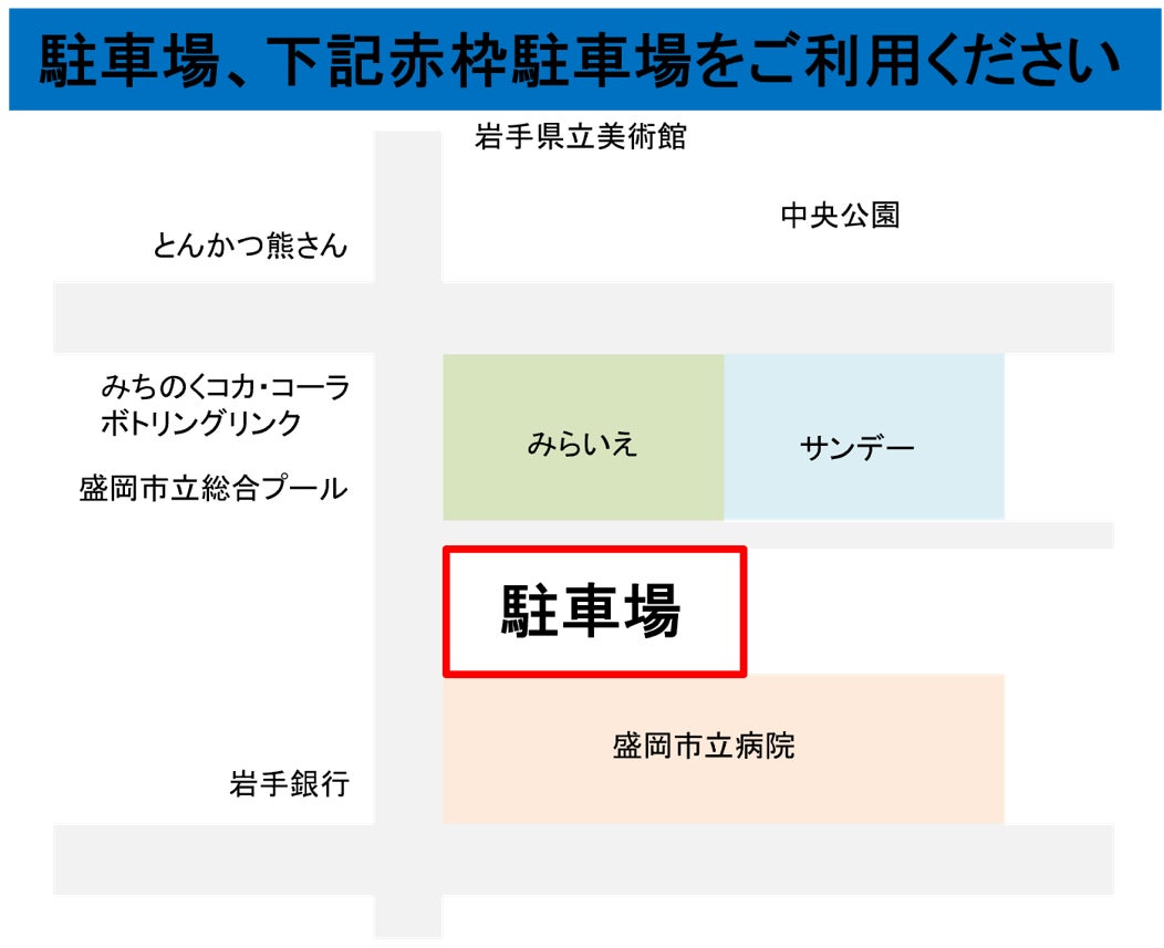 ■電車でご利用の場合 盛岡駅で下車してください。 駅からはバス、タクシーがご利用になれます。 ■バスをご利用の場合 盛岡駅東口からバスがご利用になれます。 1.岩手県交通バス『太田線先人記念館』行き乗車、 盛岡駅前バスターミナル10番線のりばから向かいます。 2.盛岡駅からバスで約10~15分くらい、「県立美術館前」バス停で降ります。 「県立美術館前」バス停から徒歩約3分くらいです。 3.タクシーをご利用の場合 盛岡駅西口より約5分くらいです。 ■お車をご利用の場合 盛岡駅西口より約5分くらいです。 駐車場があります。 |