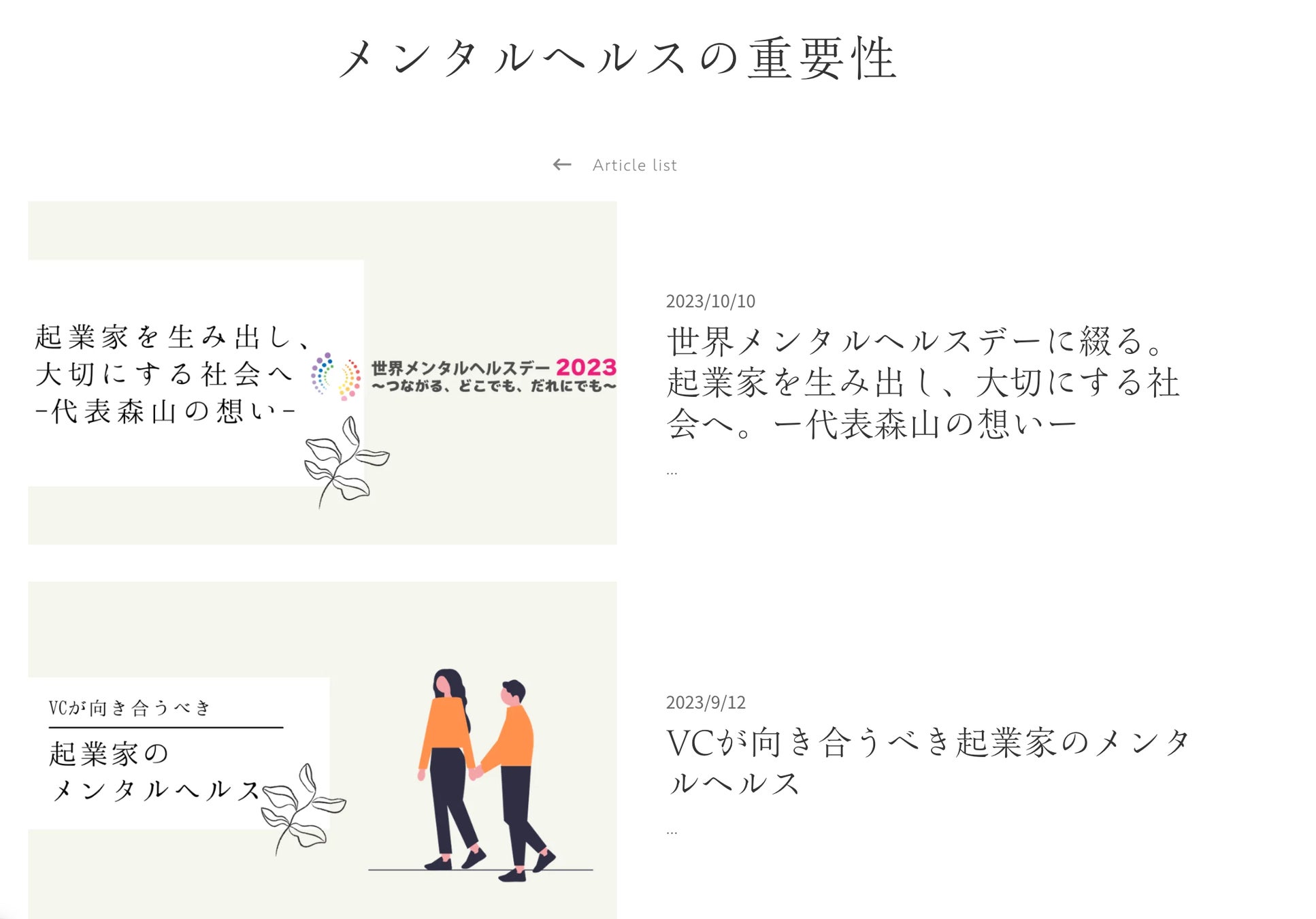 gritでは「起業家のリアルボイス」「メンタルヘルスの重要性」の2軸で記事を発信しています。「起業家のリアルボイス」では、今活躍する起業家の方々の価値観や苦悩、困難との向き合い方などを取り上げ、よりリアルな姿をお伝えします。「メンタルヘルスの重要性」では、社会全体のサポートをより強化すべく、起業家のメンタルヘルスに関する認知度を高めるための情報を発信していきます。