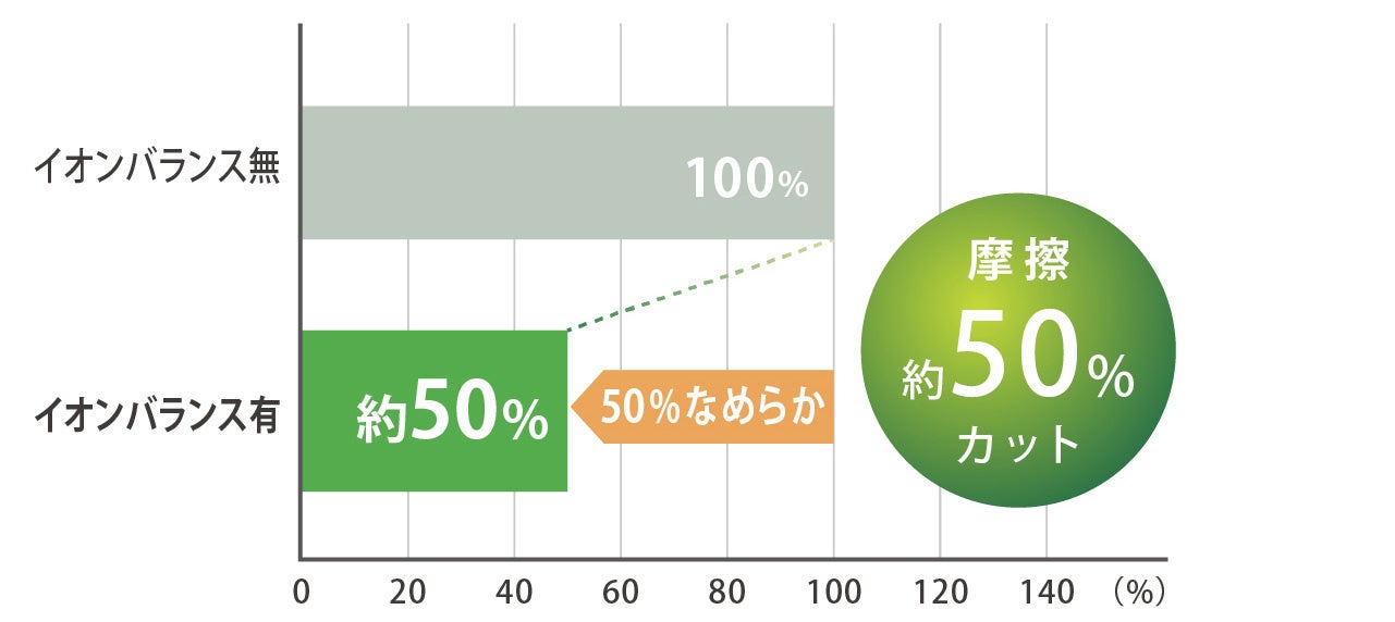 (※4)【試験方法】毛束の摩擦強度をイオンバランスの有無で測定比較。
