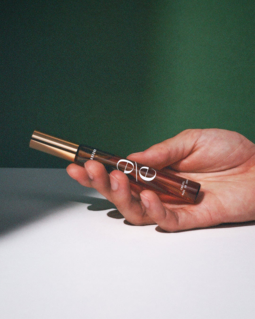 ロゴが印字されたガラスボトルにゴールドのキャップを合わせることで、ミニマルで、高級感漂う印象に。同じくEASECBDから販売されている「EASECBDロールオン ウッディシトラス」とセットで使うことで、身体の内側からも外側からもキレイに。