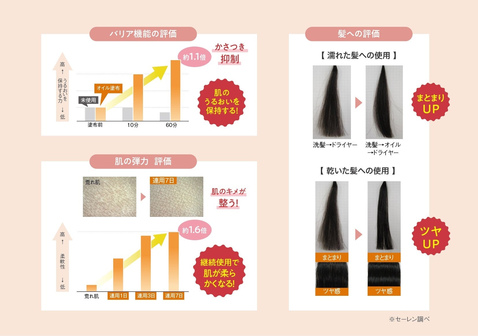【参考】コモエース モイストオイルの肌と髪への評価