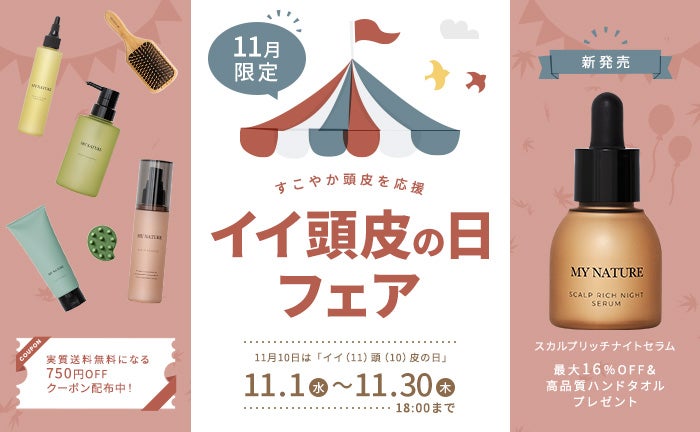「マイナチュレでは、毎年11月10日を「イイ(11)頭(10)皮の日」とし、イイ頭皮の日を含む11月のあいだ、皆さまのスカルプケアを全力サポートする月間とさせていただきます。」
