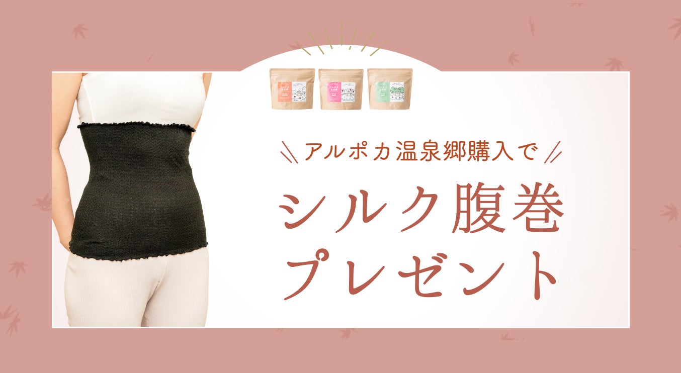 ・アルポカ温泉郷 購入で「京都 絹糸屋さんの『ふわふわの誘惑。』白雲シルク腹巻」をプレゼント(数量限定)
