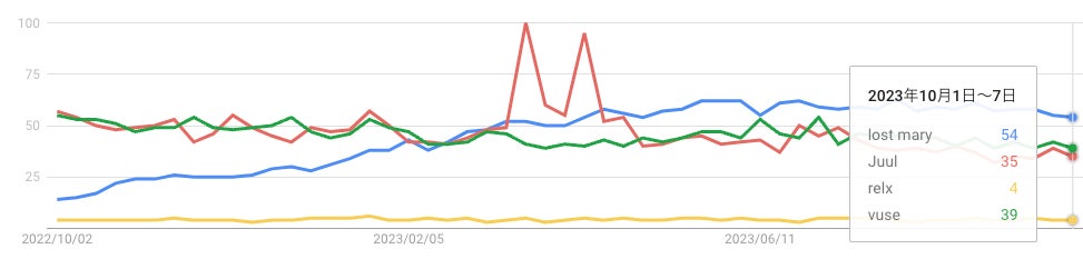 (アメリカ合衆国のベイプブランド別 人気度の動向)